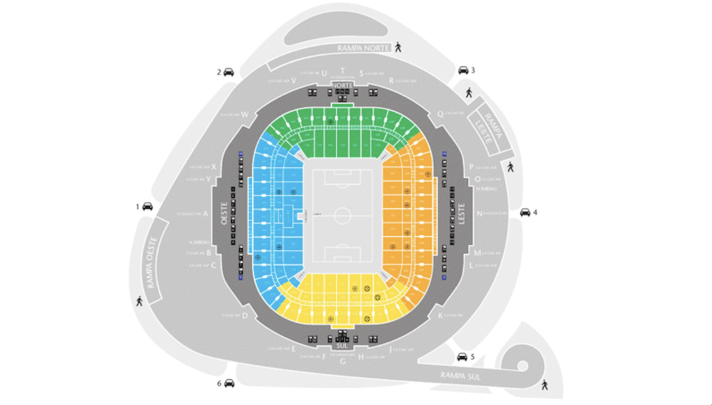 • O Acesso: A entrada é feita exclusivamente pelo Portão 6, localizado no lado Sul do estádio.