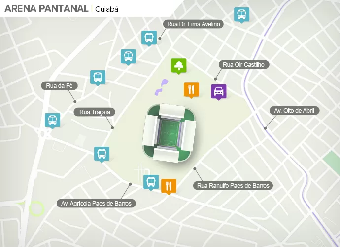 - Uber/99: É a forma mais recomendada. A Arena Pantanal fica em uma região relativamente central (Bairro Verdão), facilitando o deslocamento de hotéis na Avenida CPA ou na região da Orla do Porto. Peça para descer na Avenida Agrícola Paes de Barros.