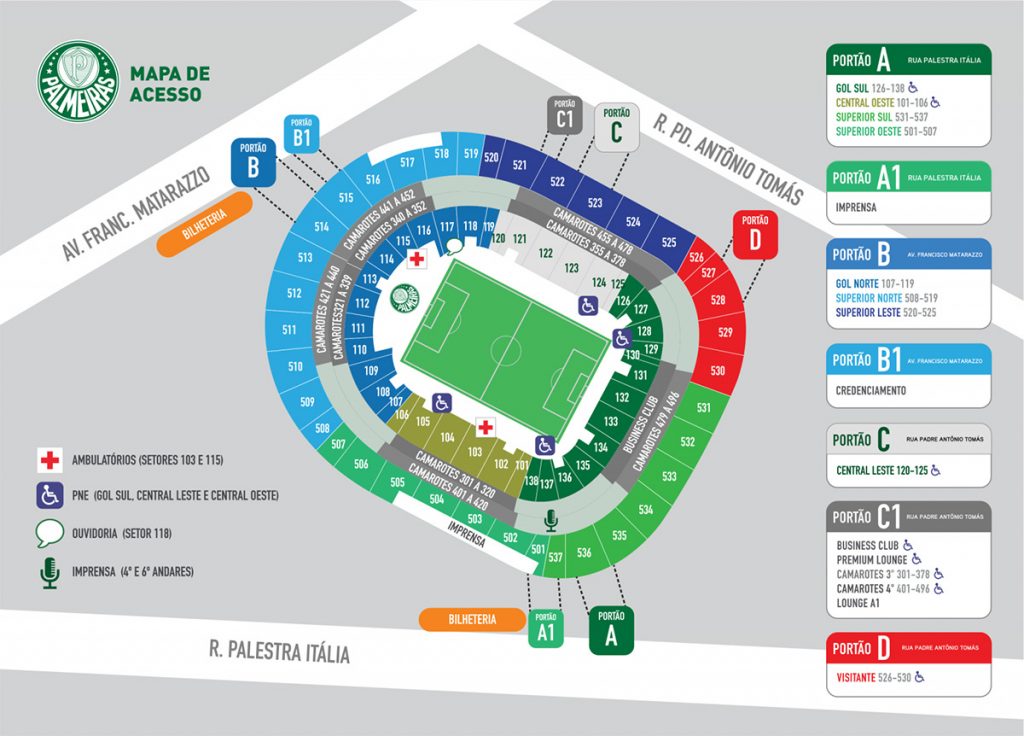 - Biometria Facial: O Palmeiras é pioneiro no uso de biometria facial para todos os setores, inclusive visitantes. Certifique-se de ter feito o cadastro no site oficial de ingressos do Palmeiras e tirado a foto com antecedência. Sem isso, você não entra, mesmo com o ingresso pago.